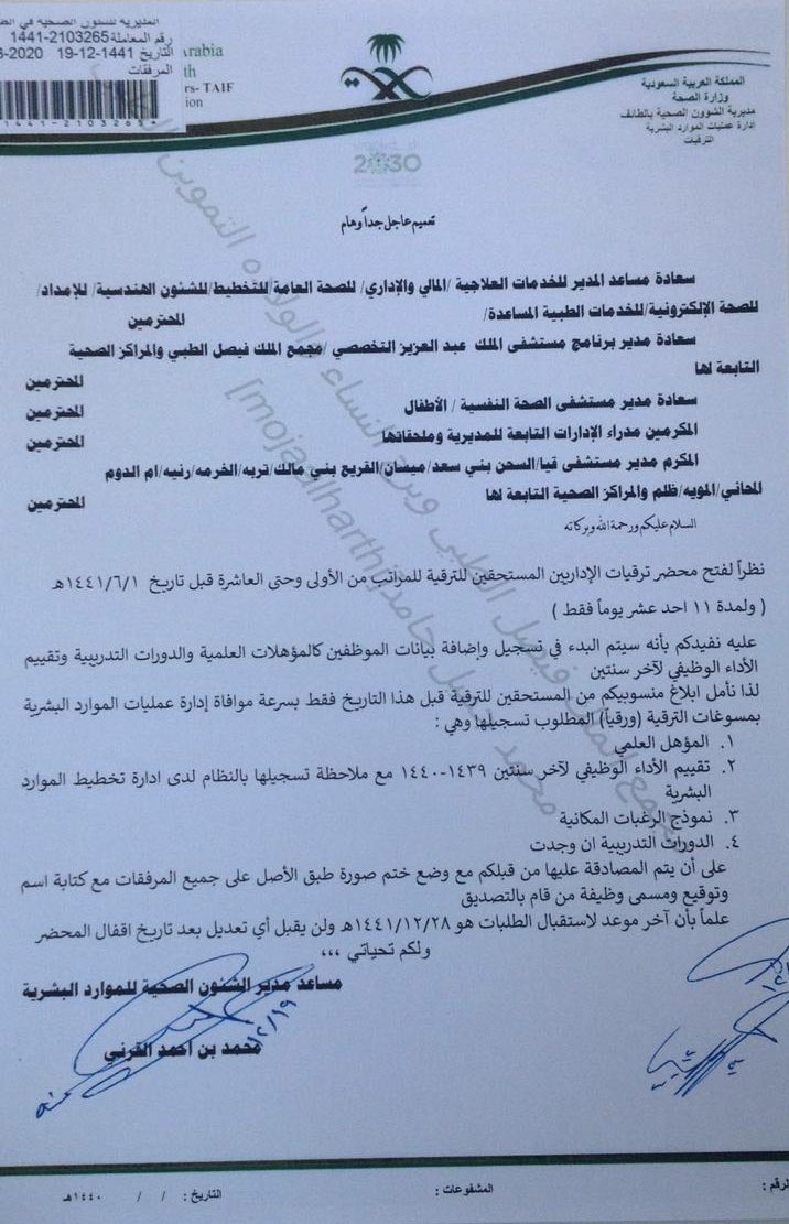 صريح A Twitter فتح محضر الترقيات للكادر الاداري Moh Staff Ksa Emp Hrsd Sa