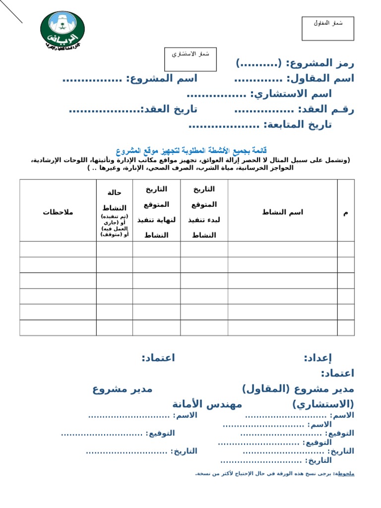 07 قائمة بجميع الأنشطة المطلوبة لتجهيز موقع المشروع