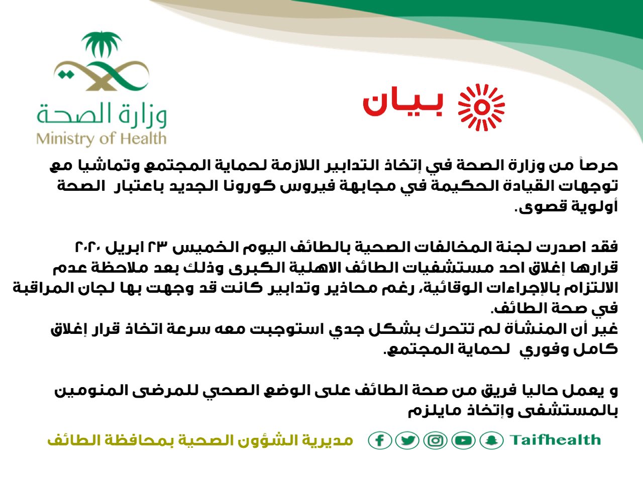 صـحـ ـة الـ طـ ـائـ ف On Twitter صحه الطايف بيان رسمي