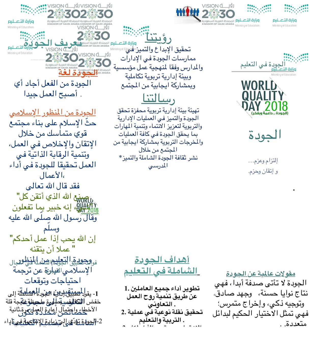 المطويات والمنشورات مطوية بعنوان الجودة2018 اليوم الثلاثاء الموافق 5 3 1440
