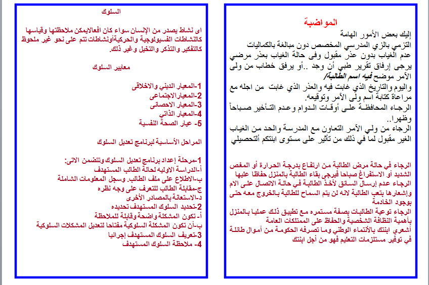 خطة تعديل سلوك جاهزة وهي اجتهاد شخصي قابلة للتعديل ويمكن القياس والتعميم عليها لطلبة الجامعات والتدريب الميداني